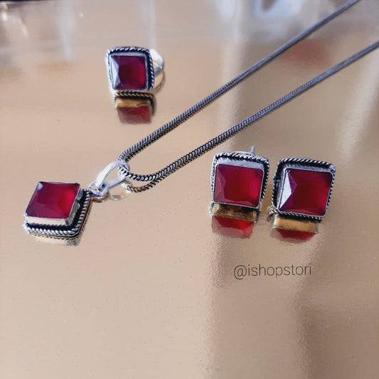 Mrihaan Square Monalisa Stone Oxidised Combo Set