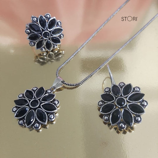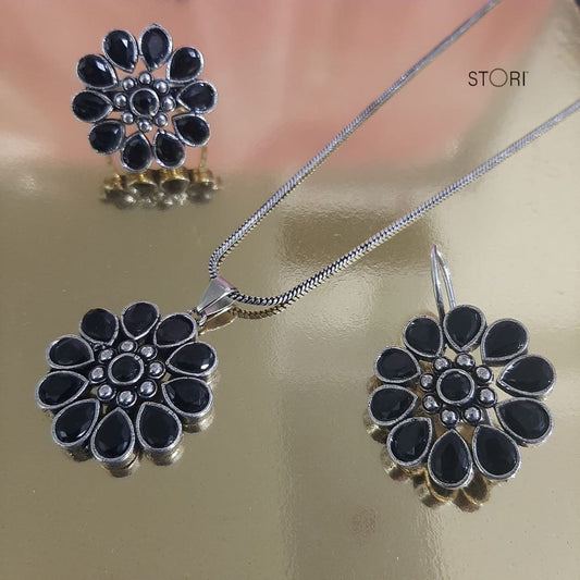 Reet Floral Star Pattern Monalisa Stones Oxidised Combo Set