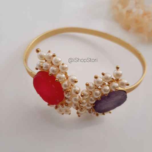 Niha Pink & Purple Raw Stone Bracelet With Pearls