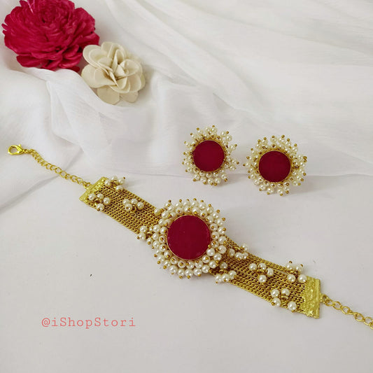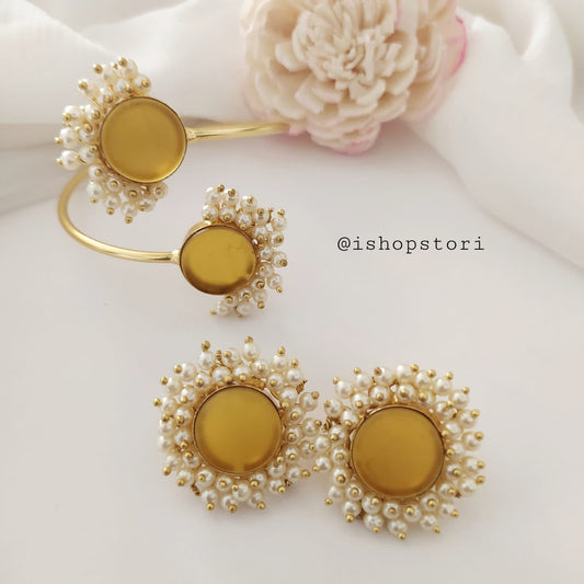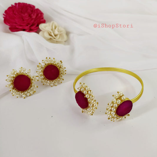 Nandini Raw Stone Earrings & Bracelets Combo Set