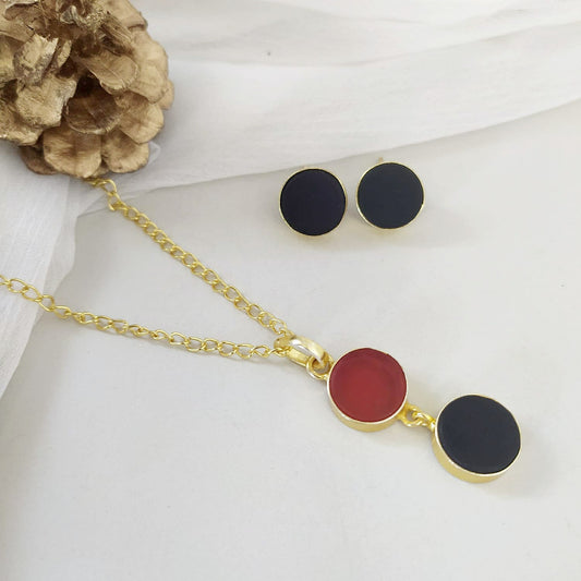Geetika Glossy Square Stone Neckpiece With Earrings