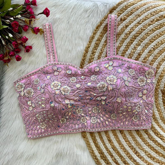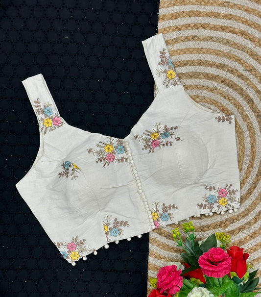 Cambric Cotton Designer Blouse With Embroidery And Sequined Work