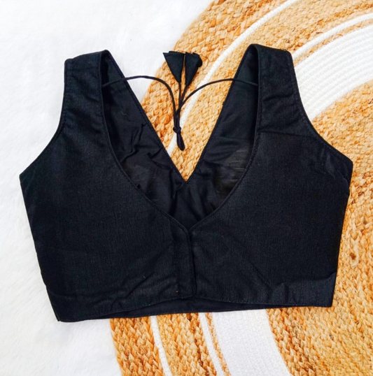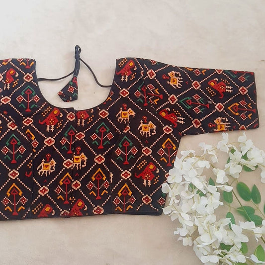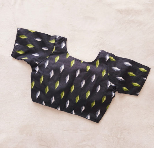 Smoke Black Ikkat Printed Cotton Silk Blouse