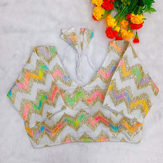 Chevron Multi-Sequins & Thread Embroidered Georgette Blouse