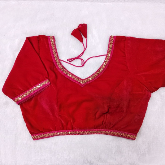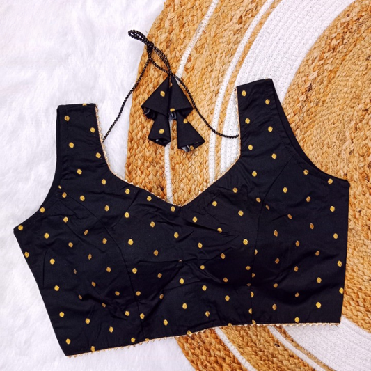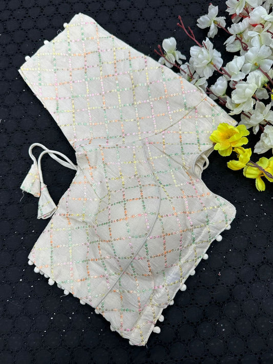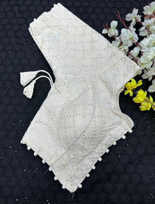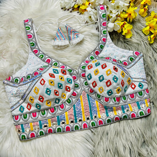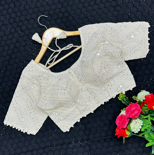 Khadi Cotton Designer Blouse With Mirror Embroidery