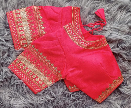 Traditional Multicolor Silk Blouse With Kutchi Work - Plus Size Navratri Special