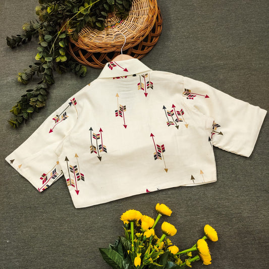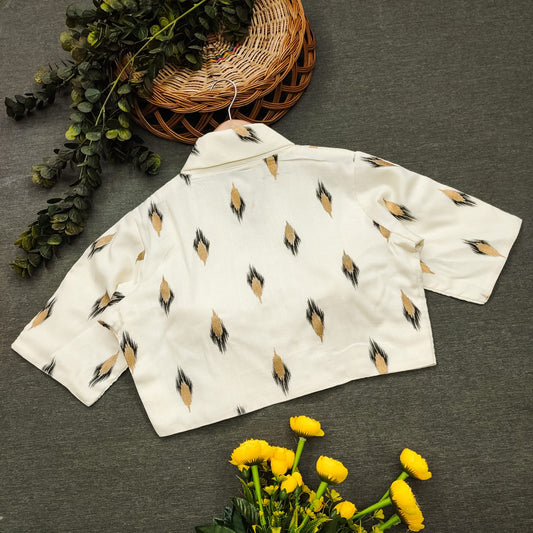 Ikkat Foil Printed Slub Cotton Crop Top / Collar Blouse