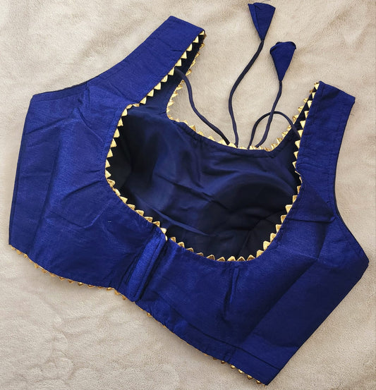 Solid Blue Color Tapeta Silk Blouse With Lace