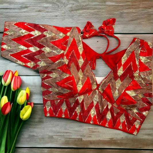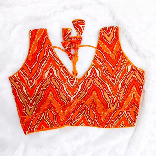 Shibori Printed Chevron Styled Sequined Designer Blouse