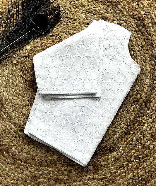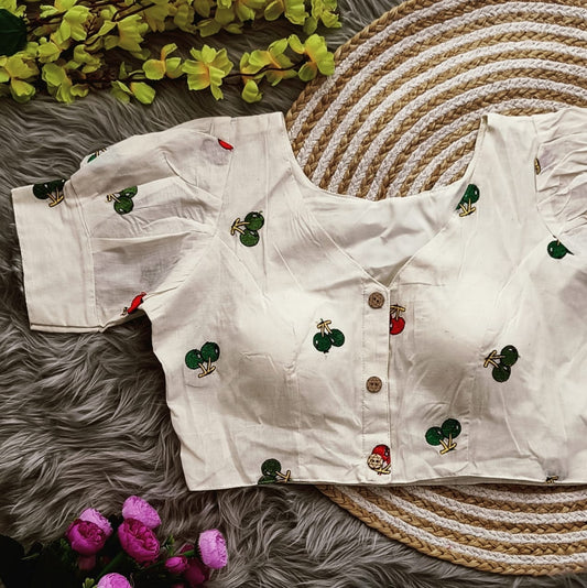Embroidered Cambric Cotton Designer Blouse With Puffed Sleeves