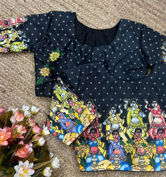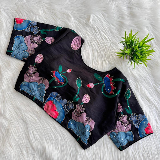 Nandi Pichwai Art Printed Designer Blouse With Sequins Handwork