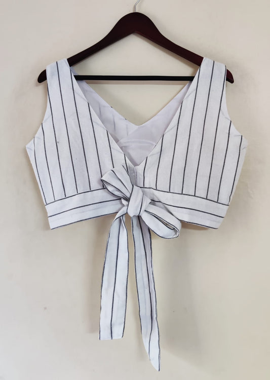 Khadi Cotton Sleeveless Blouse With Back Bow (Attached Sleeves)