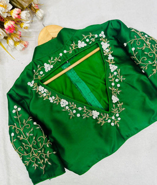 Princess Cut Designer Silk Blouse with Beaded Handwork