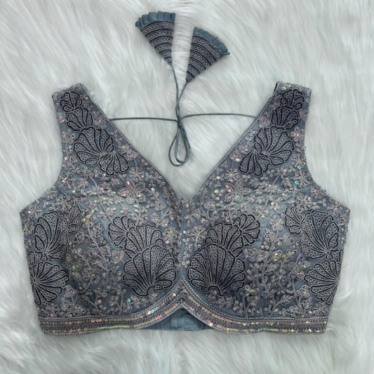 Bahaar Floral Sequined Designer Sleeveless Blouse
