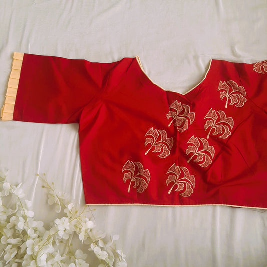 Soft Cotton Maroon Blouse With Palash Flower Embroidery