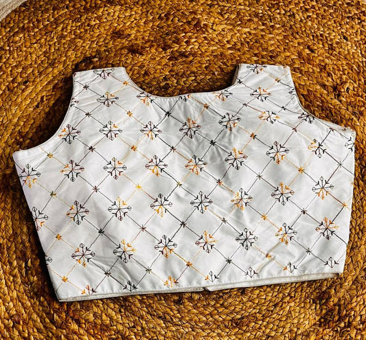 Karen Satin White Embroidered Designer Blouse