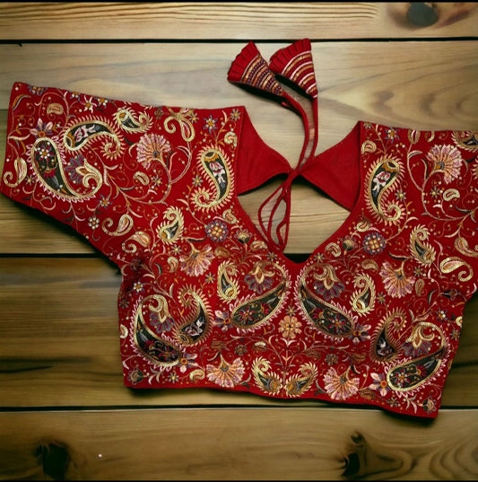 Kashmiri Multicolor Silk Thread Embroidered Designer Blouse