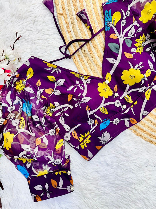 Kalamkari Printed Organza Long Sleeved Designer Blouse