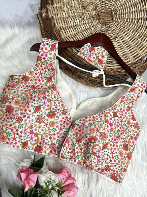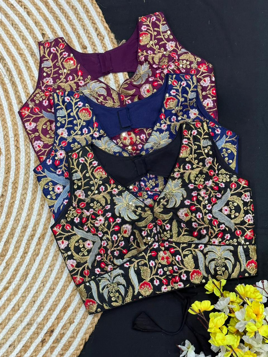 Floral Silk Thread & Zari Embroidered Designer Silk Blouse