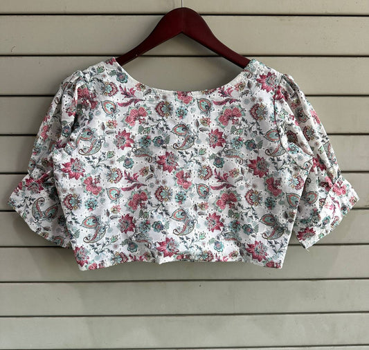 Hakoba Pure Cotton Designer Blouse With Puff Sleeves
