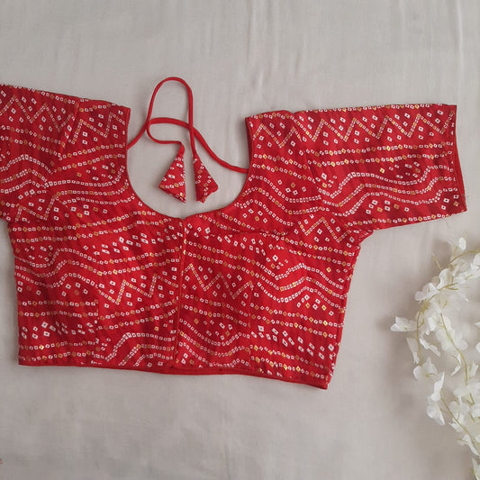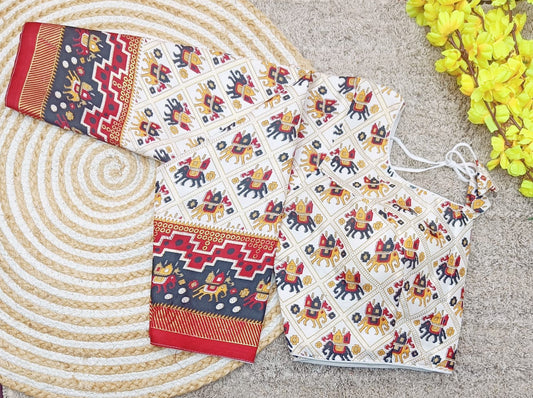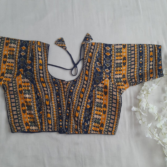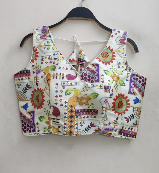 Digital Abstract Printed Raw Silk Designer Blouse With Cording