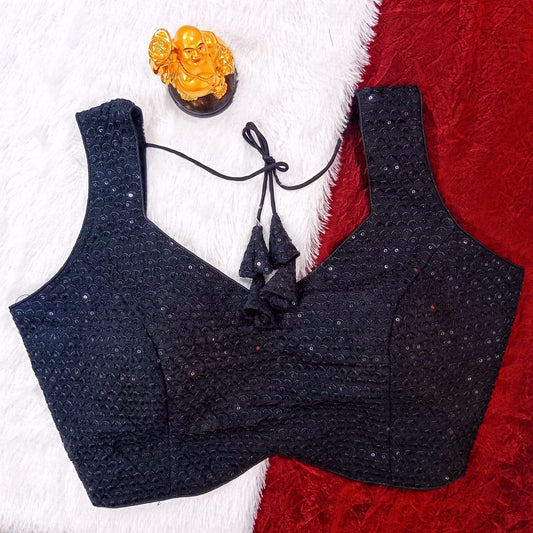 Embroidered Phantom Silk Blouse With Zari & Sequins Work