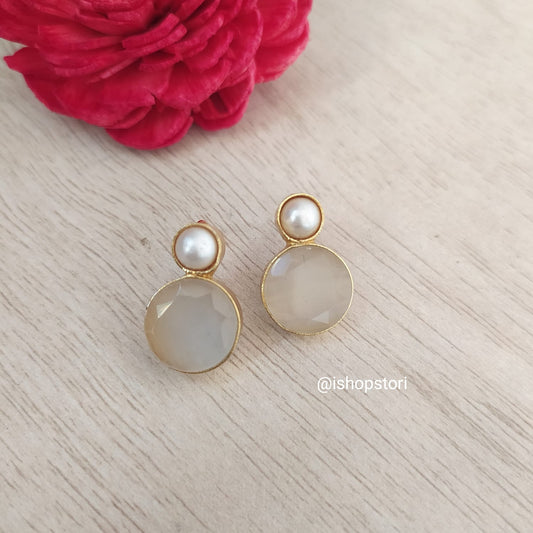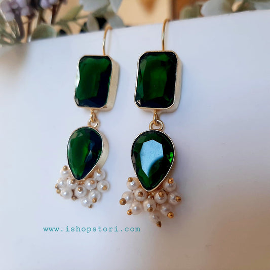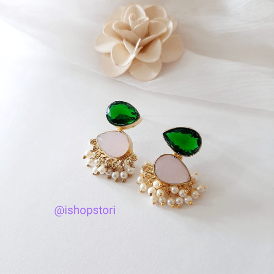 Samantha Glossy Stone & Pearls Drop Earrings