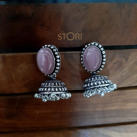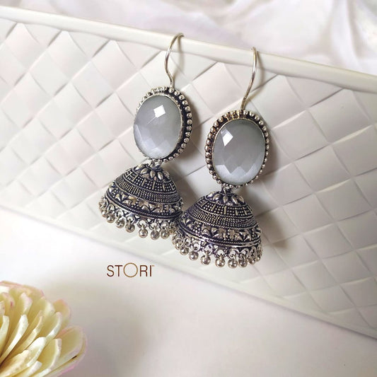 Harteeij Oval Monalisa Stone German Silver Jhumkis