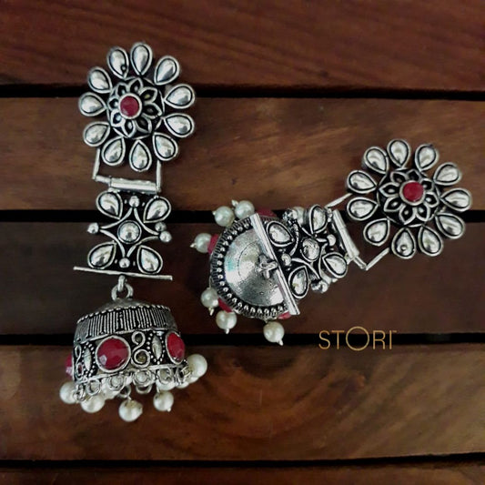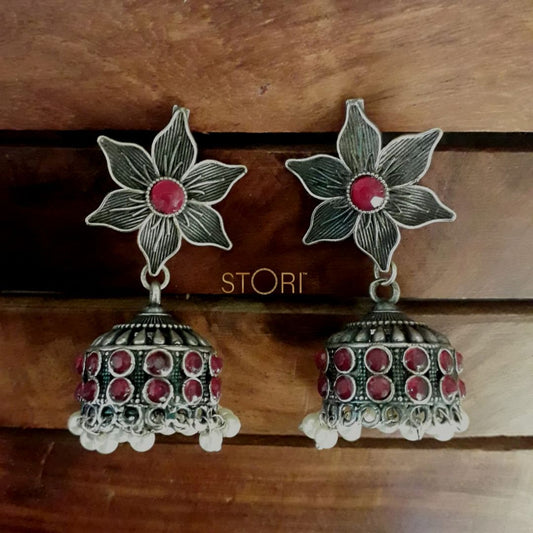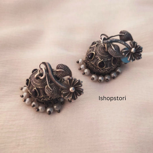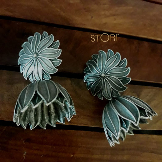 Daksha Floral German Silver Jhumki Earrings