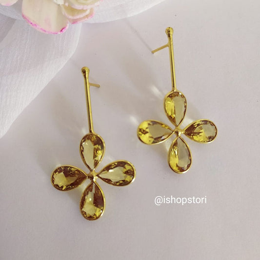 Tanvi Glossy Stones Quadra Petals Statement Earrings