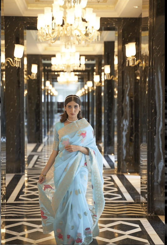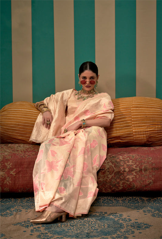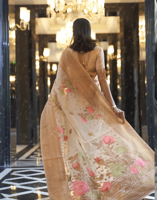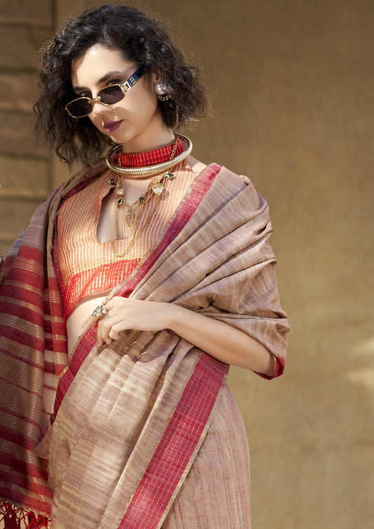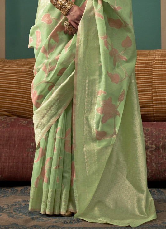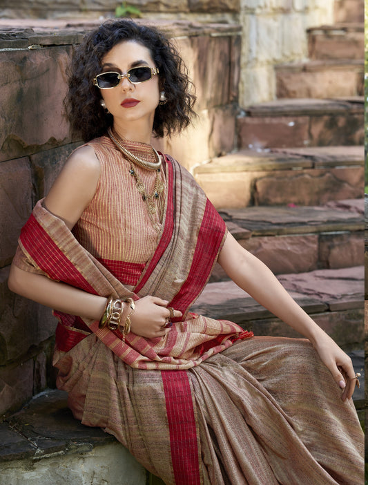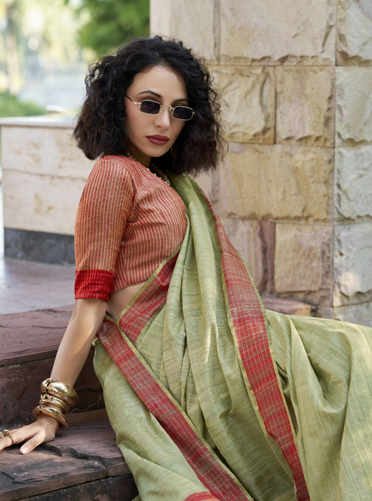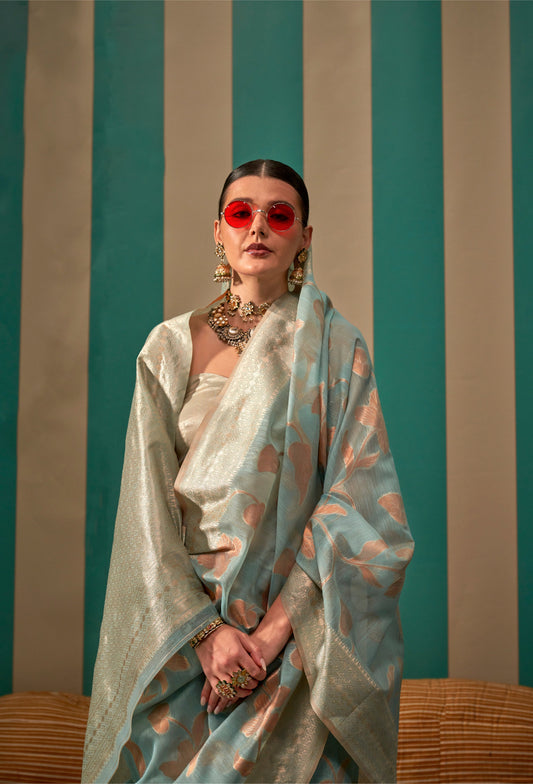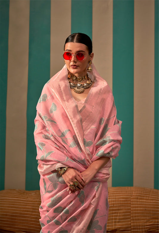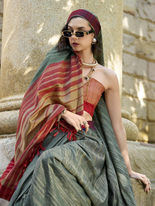 Polka Dots Grey Linen Saree With Silver Zari Border