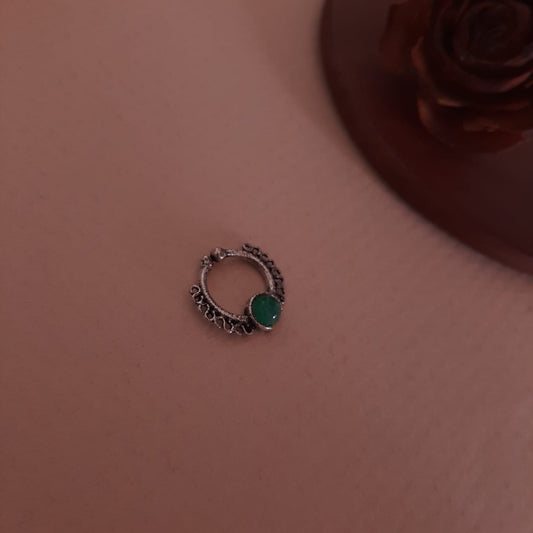 Green Spade Shaped Small Stone Oxidized Clip-on Nosepin