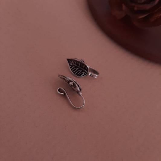 Pallav Leaf Shaped Oxidized Clip-on Nosepin
