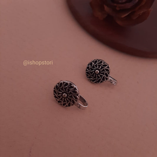 Trishna Floral Shaped Oxidized Clip-on Nosepin
