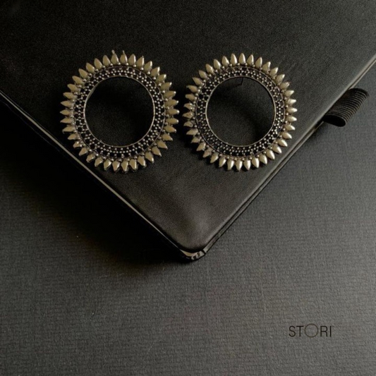 Circle Halo Oxidised Earrings