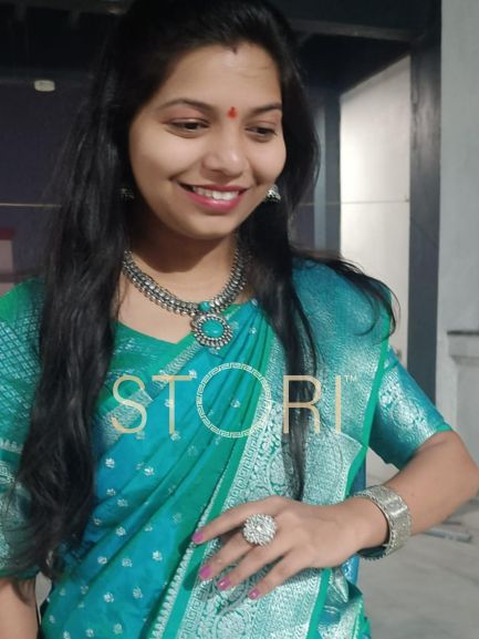 Kolhapuri Pendant Oxidised Necklace Set With Jhumki Earrings & Nosepin