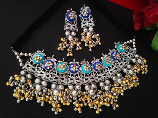 Tanaash Monalisa Tear Drop Stone Oxidised Combo Set