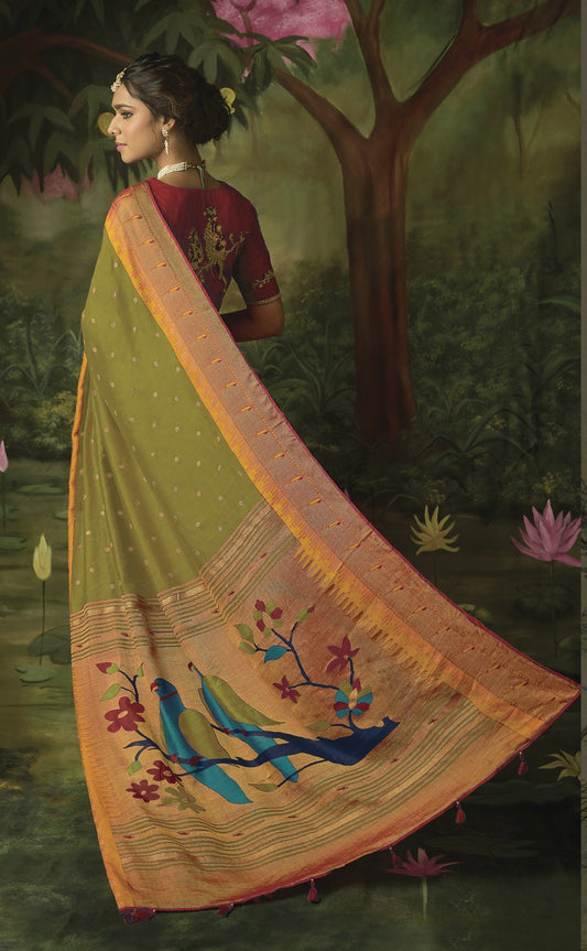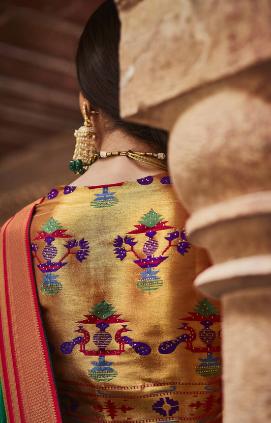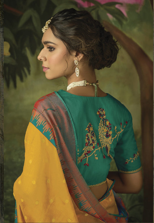 Mustard Yellow Paithani Saree With Embroidered Blouse