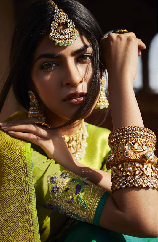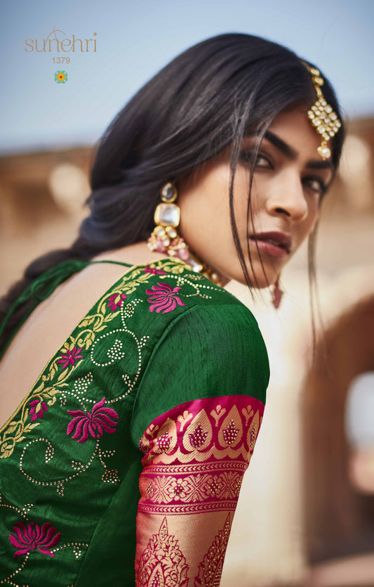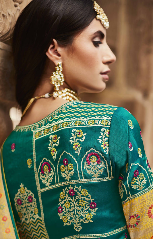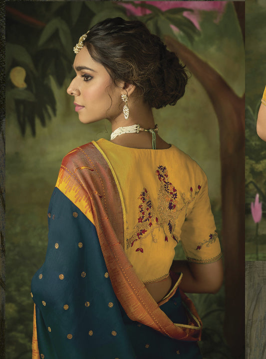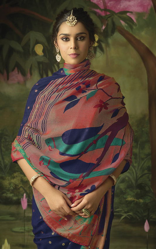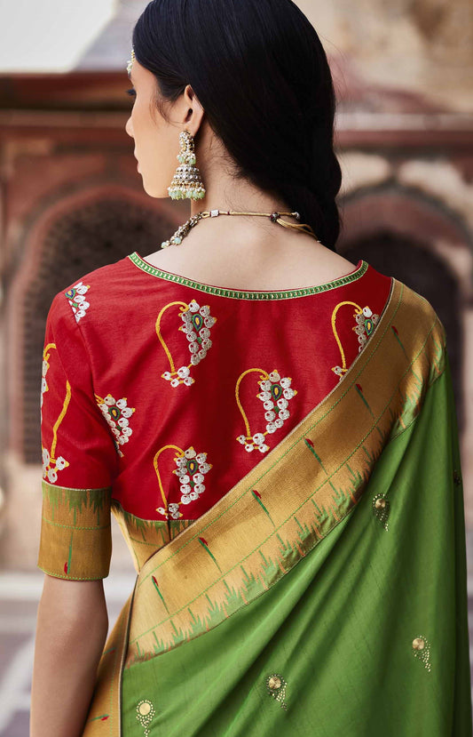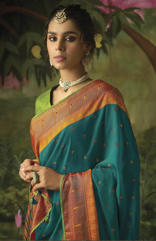 Wintergreen Blue Paithani Saree With Embroidered Blouse