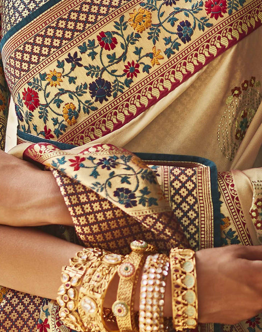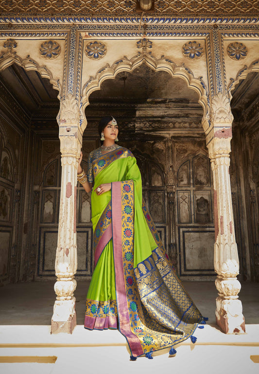 Cadmium Yellow Banarasi Patithani Saree With Designer Blouse