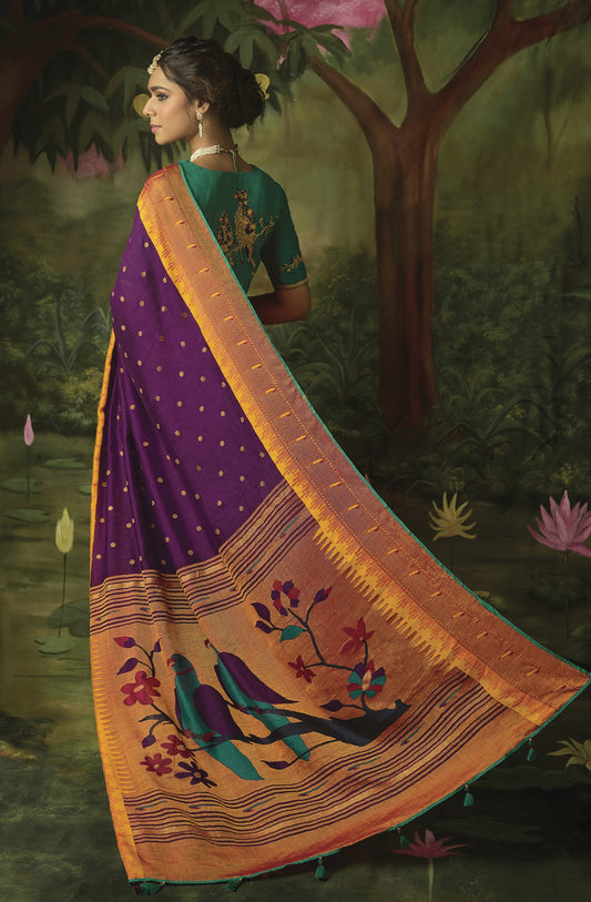 Mystic Magenta Paithani Saree With Embroidered Blouse