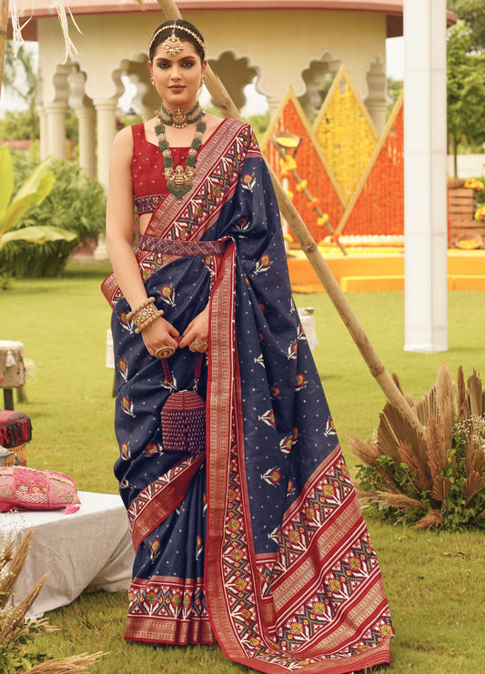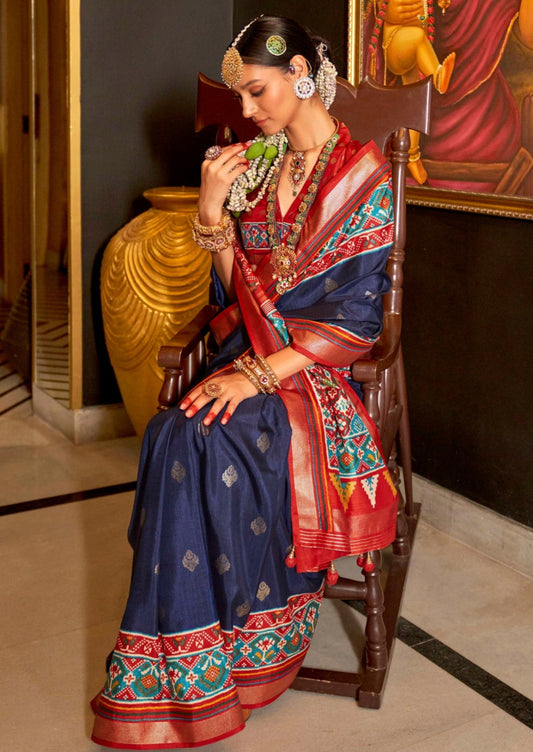 Navy Blue Patola Silk Saree