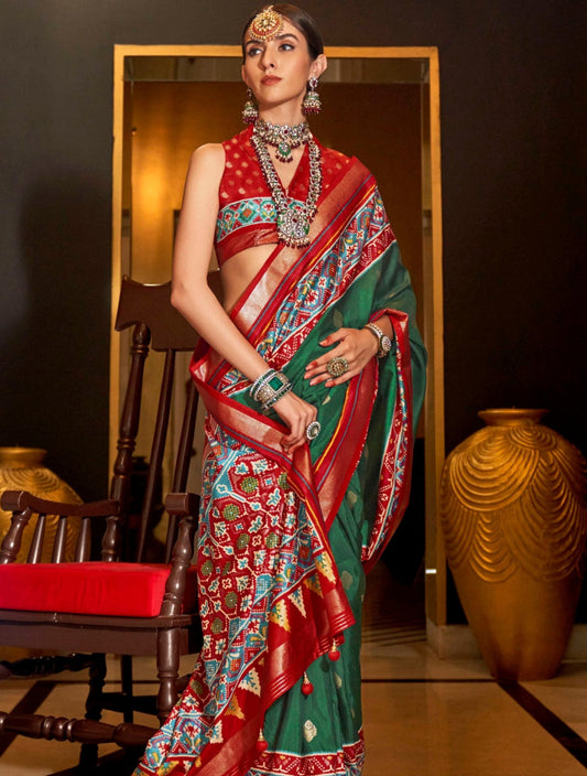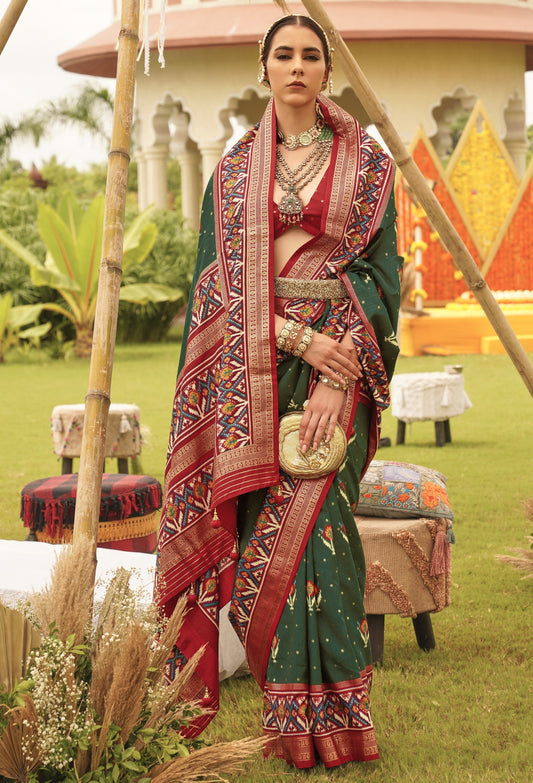 Dark Green Patola Silk Saree