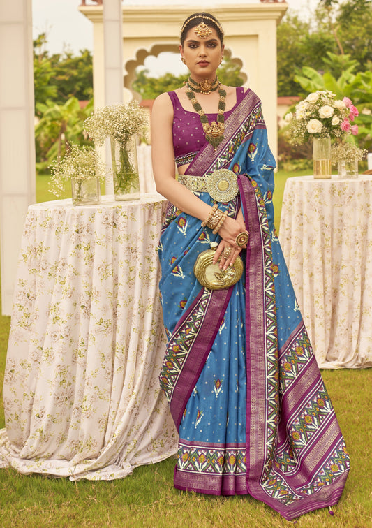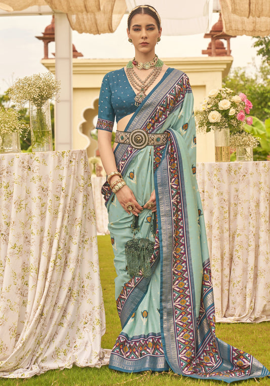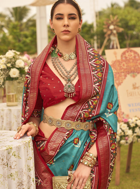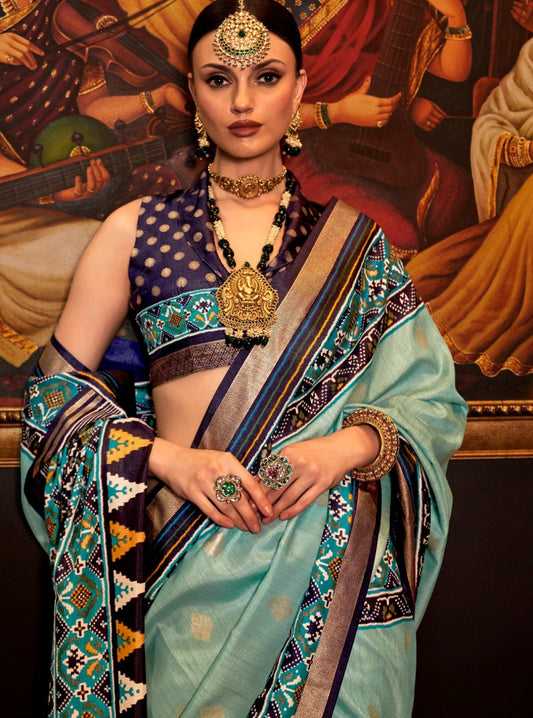 Aquamarine Blue Patola Silk Saree