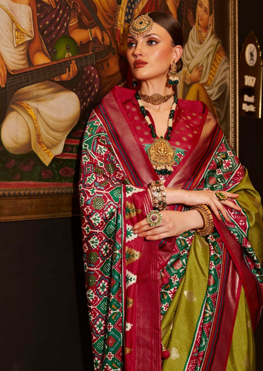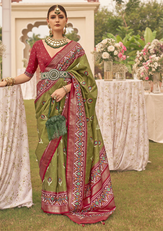 Olive Green Patola Silk Saree