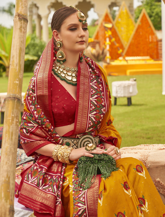 Mustard Yellow Patola Silk Saree