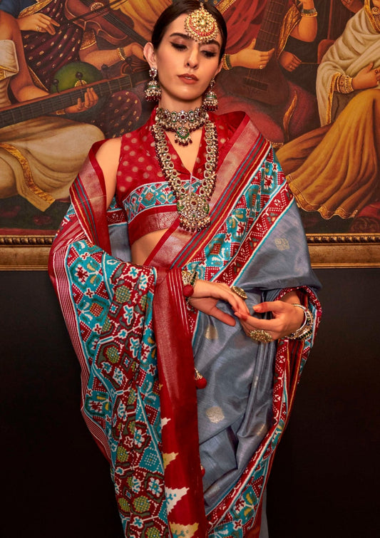 Grey Patola Silk Saree