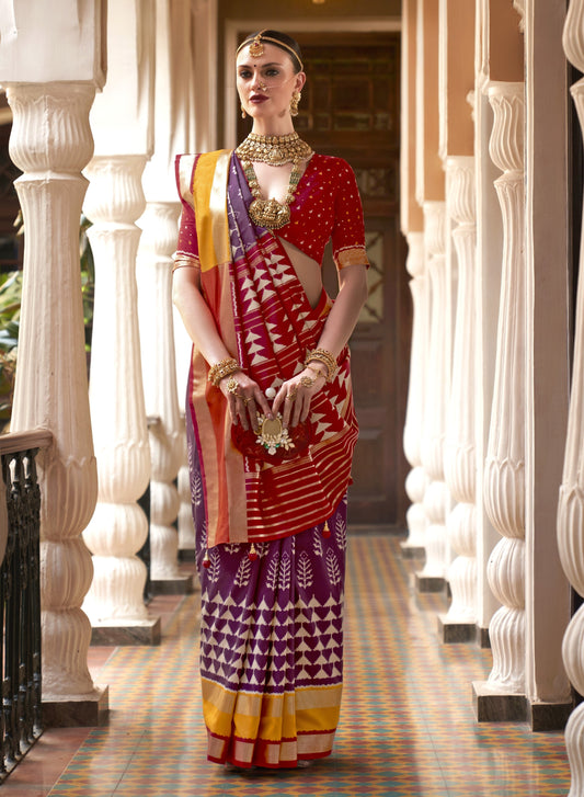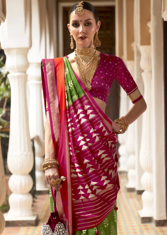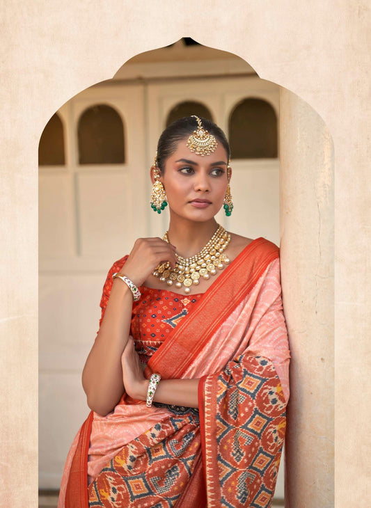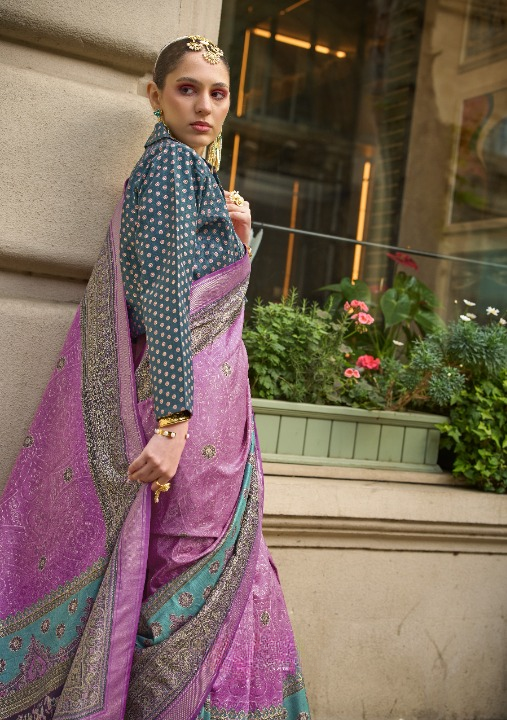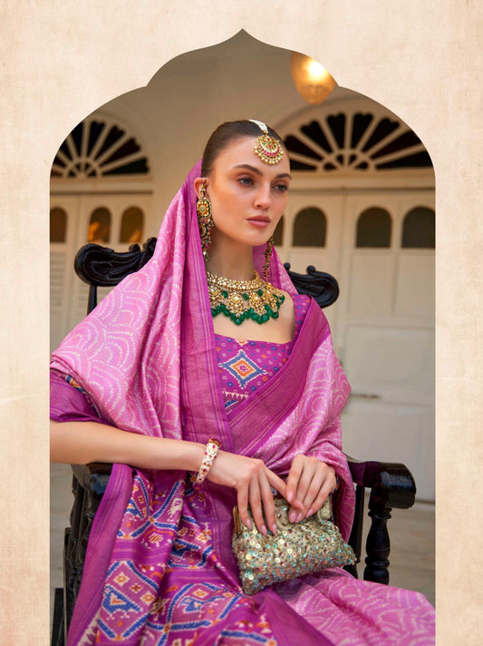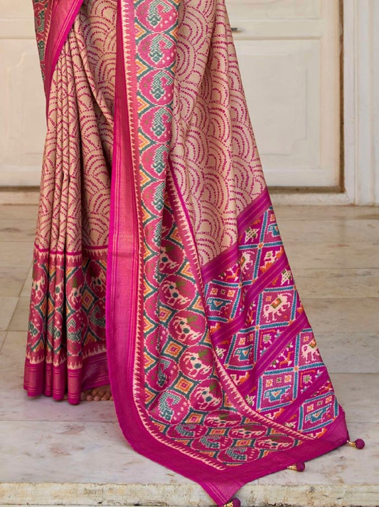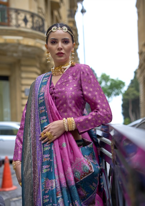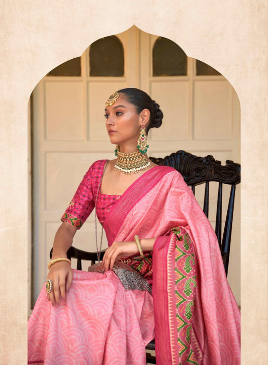 Onion Pink Silk Saree With Exotic Art Printed Border