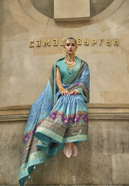 Aegean Blue Weaved Patola Silk Saree