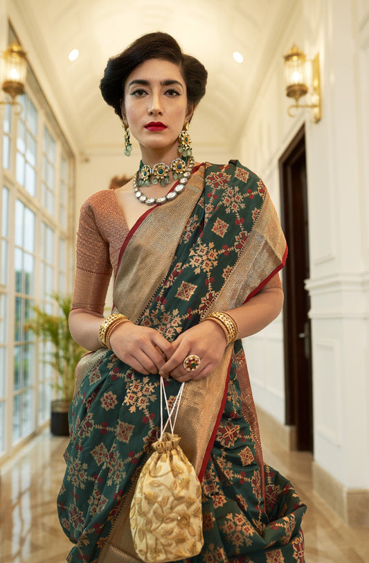 Emerald Green Designer Patola Silk Saree